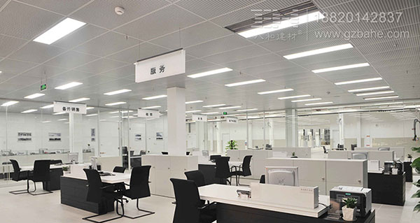 東莞世奧奧迪4S店內天花吊頂裝修,使用了1200*300mm的勾搭式沖孔鋁天花吊頂,銀灰色的色彩,與室內空間完美融合。勾搭式沖孔鋁天花吊頂,背部有消音棉,防潮阻燃的效果,很適合安裝在休息室,讓空間沒有太多的雜音。