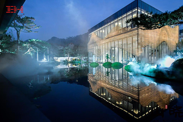 重慶融創(chuàng)山曉生活美學(xué)館立于一片干凈的水景之上的,像一棟漂浮的水上島嶼,運(yùn)用書法留白的手法承托出主體建筑,景觀以最完美的方式烘托建筑藝術(shù)。