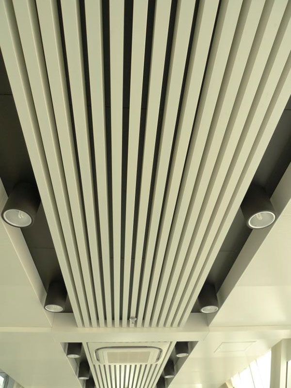 上圖為50*100mm白色鋁方通,位于過道天花中間,有導向性視感。