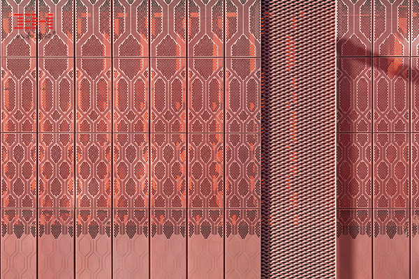 - 銅色穿孔鋁板外墻,極具金屬感的廣州得意日式鐵板料理餐廳
