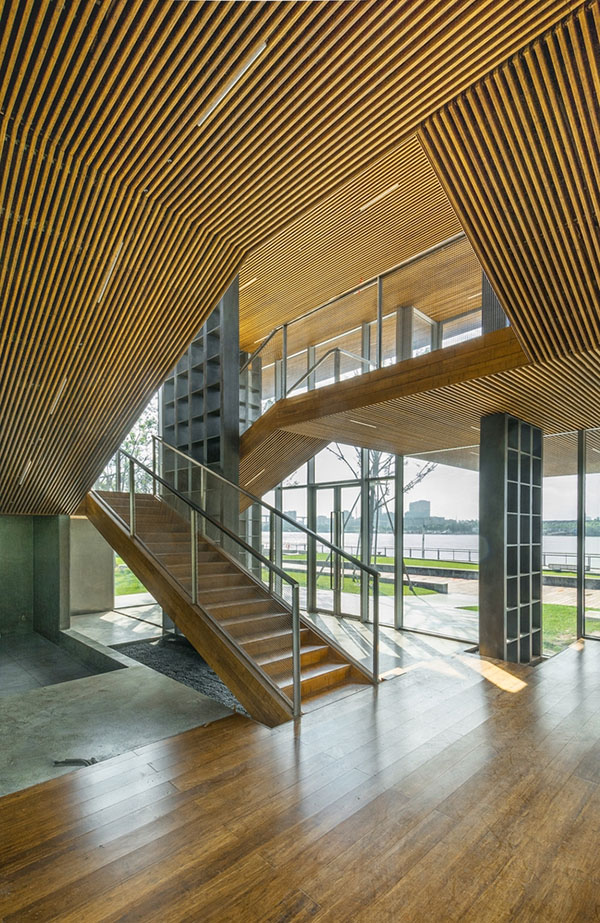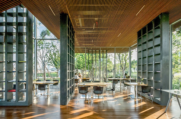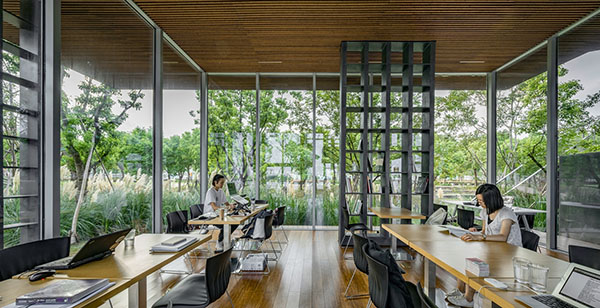 格樓書屋位于上海徐匯區濱江公園,基地四周被開闊的江景和茂密的綠樹環繞。在開放的自然中,我們希望這座通透的書屋在融入環境的同時,為人提供親切舒適的內在空間。