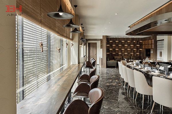 - 銅色穿孔鋁板外墻,極具金屬感的廣州得意日式鐵板料理餐廳