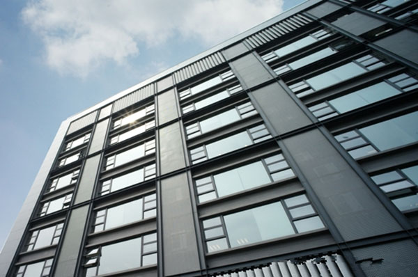 穿孔鋁單板將空調主機隱藏在內,也使得整個建筑外觀更加整潔,干凈。