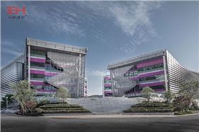 斜向彩色鋁單板作為遮陽板,與條形玻璃幕墻組合,構造出大量靈動流暢的線條,為小鎮增添了活躍的流動色彩,體現小鎮主題設計和功能特色。