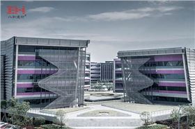 寧波前洋e商小鎮小鎮的入口主立面采用了彩色鋁單板和金屬拉伸網的組合,金屬拉伸網比沖孔鋁板把半透明視覺效果表現得更加明顯,裝飾在外墻樓梯,增添幾分朦朧的未來感。