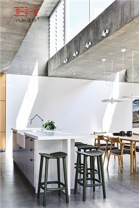 Moving House 是一棟于維多利亞州基尤區(qū)(Kew,Victoria)的住宅。 房子外部的白色鋁制屏風(fēng)形成了一個輪廓如同郊區(qū)山墻屋頂般的單一體量,形體和顏色與它近鄰的景觀相融,在保持透光性的基礎(chǔ)上巧妙地分割了室內(nèi)外空間。