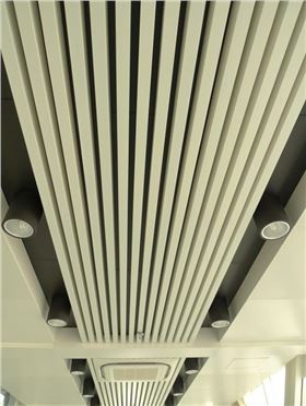 上圖為50*100mm白色鋁方通,位于過道天花中間,有導(dǎo)向性視感。