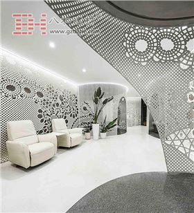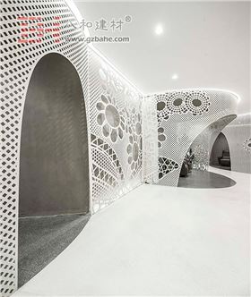 在中國北京朝陽區,八和建材已經完成了一個新的內部空間,里面有穿孔的流動墻壁,采用的是八和建材鏤空弧形鋁板制成。新的百合美甲沙龍的空間被劃分為不同的空間——通過持續的墻壁來創造柔韌的環境和女性氣質,以及改善指甲沙龍的身份和舒適性。