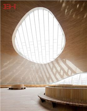 內蒙古鄂爾多斯博物館像是空降在沙丘上的巨大時光洞窟,其內部充滿自然的光線,正將城市廢墟轉化為充滿詩意的公共文化空間。內部的流線是一條游動在光影中連續的線, 時而幽暗私密,時而光明壯觀,峽谷中的橋連接著兩側的展廳,人們在游覽途中會反復在穿過空中的橋上相遇。博物館外墻采用大面積的實體墻面和鋁單板幕墻以抵御鄂爾多斯嚴寒和惡劣的天氣。