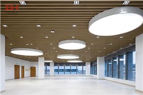 條形鋁扣板具有阻燃、防腐、防潮的優點,裝拆方便,方便施工和維護的優點,是現代建筑大樓內部天花的首選裝飾材料,港珠澳大橋珠海口岸大樓室內及室外走廊均選用了條形鋁扣板裝飾。