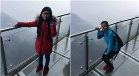 沿途我們經過了長100米的玻璃棧道,位于空曠的山頂側面,這里的風特別大,寒冷的風與透明的玻璃一樣讓人發抖,來兩張美女照片。