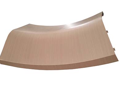 木紋雙曲鋁單板工藝復雜,能展現弧形之美。優質的表面處理耐腐蝕、抗紫外線,顏色、板材厚度可按需定制,滿足建筑裝飾設計需要。