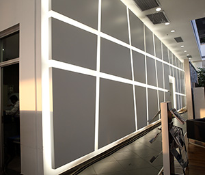 汽車4S店室內較簡潔大氣,但又不失個性。產品多用于背景墻面及天花吊頂裝飾,似乎每個品牌汽車4S店都有其代表性的作品。